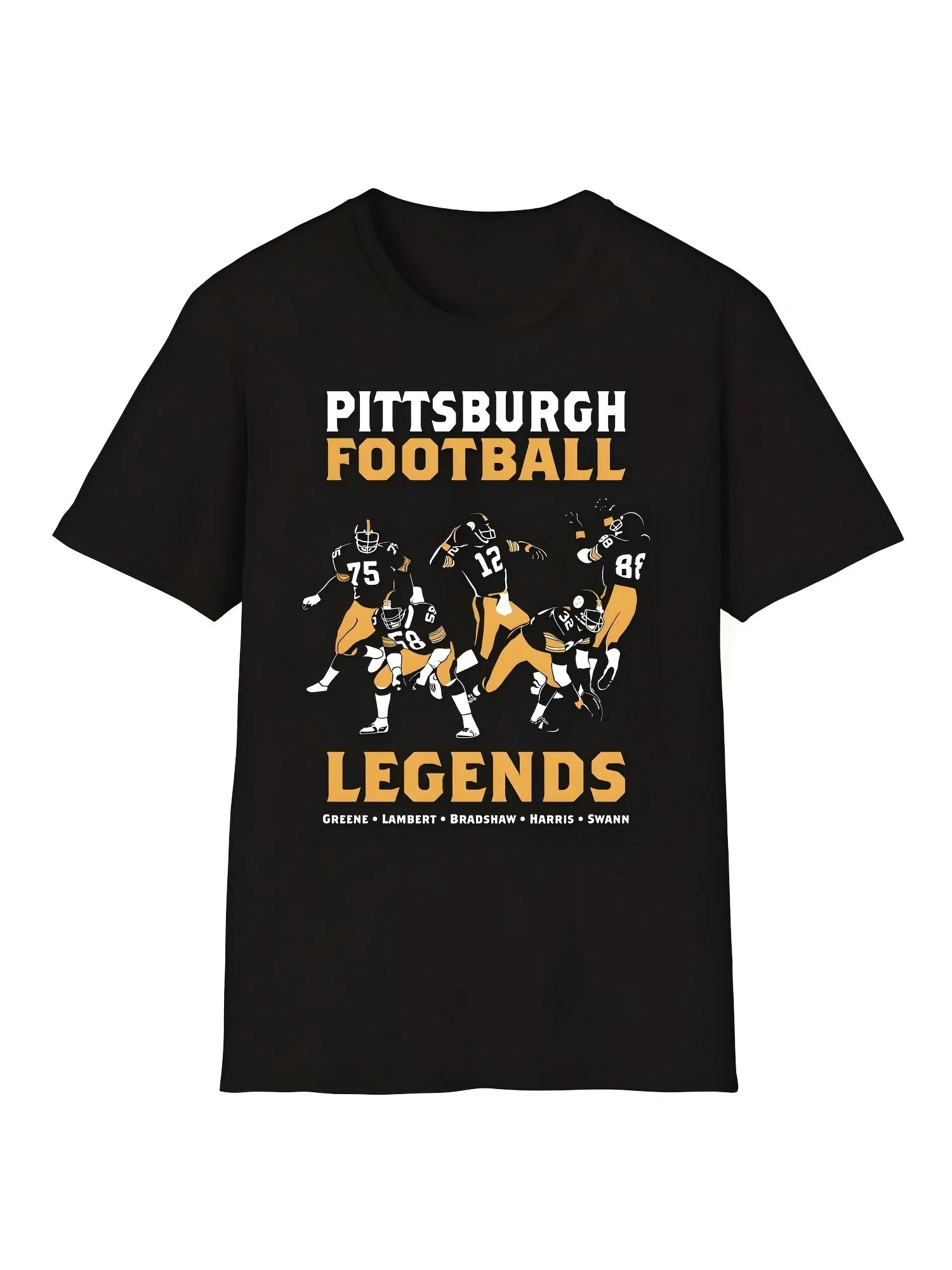 Vintage Cotton Retro Graphic Pittsburgh Football Legends Men's T-Shirt - Casual, Short Sleeve